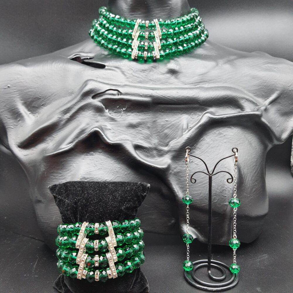 Realizzati con mezzi cristalli, colore verde smeraldo e connettori in lega metallica argentata e strass