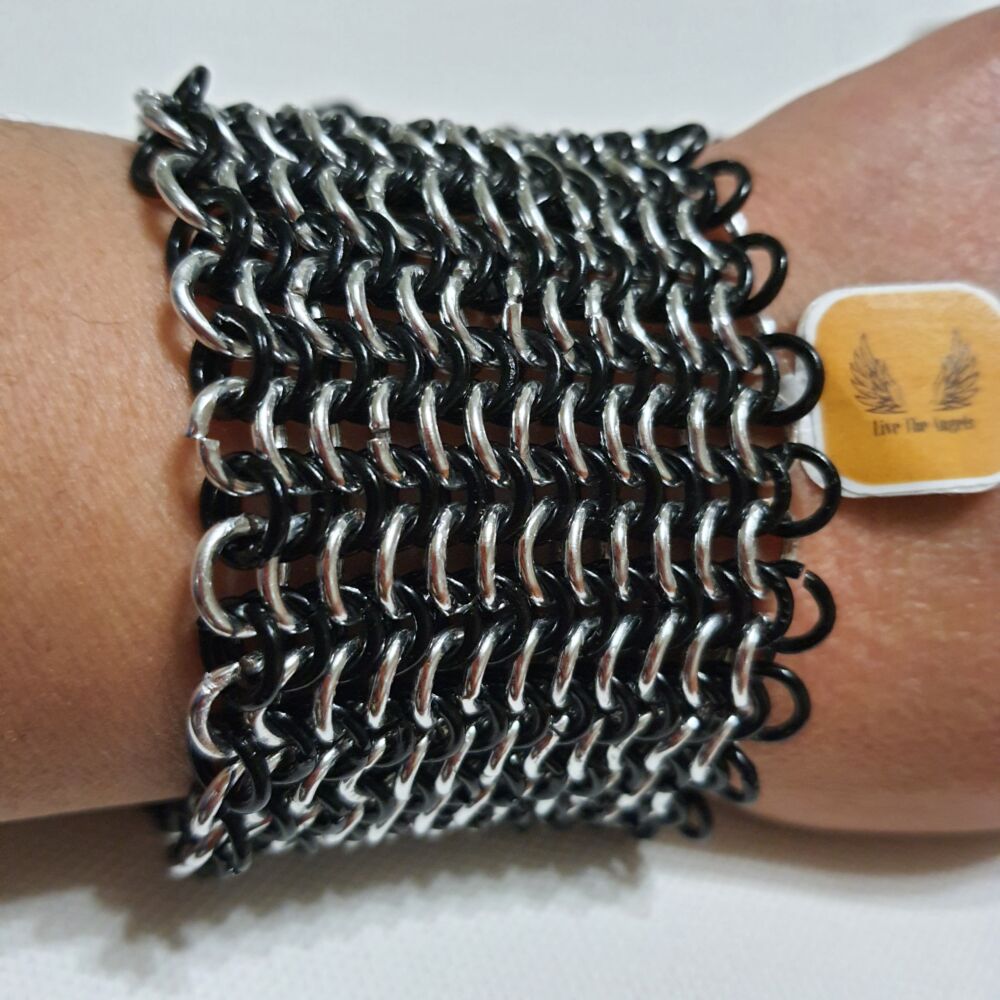 Alto bicolore realizzato in alluminio argentato e nero.