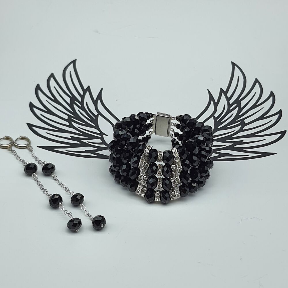 Realizzati con mezzi cristalli colore nero e connettori in lega metallica argentata e strass