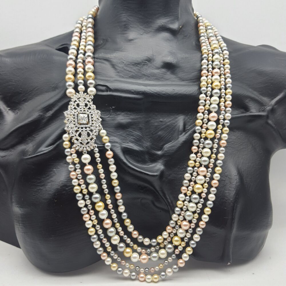Multifilo realizzato con perle di conchiglia sfumate e bellissimo centrale e chiusura con strass.